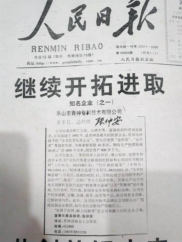 1992 年12 月,成立乐山市青神专利技术开发公司,原汁酱油开始研发;