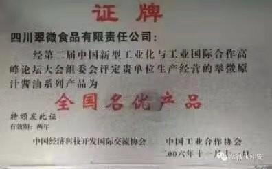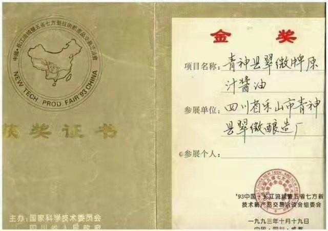 1993 年10 月,翠微原汁酱油获得国家金奖,轰动全国;