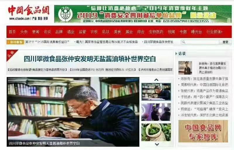 中国发明专利酿造产品、填补世界空白的中国微生物发酵无盐酱油——翠微无盐酱油