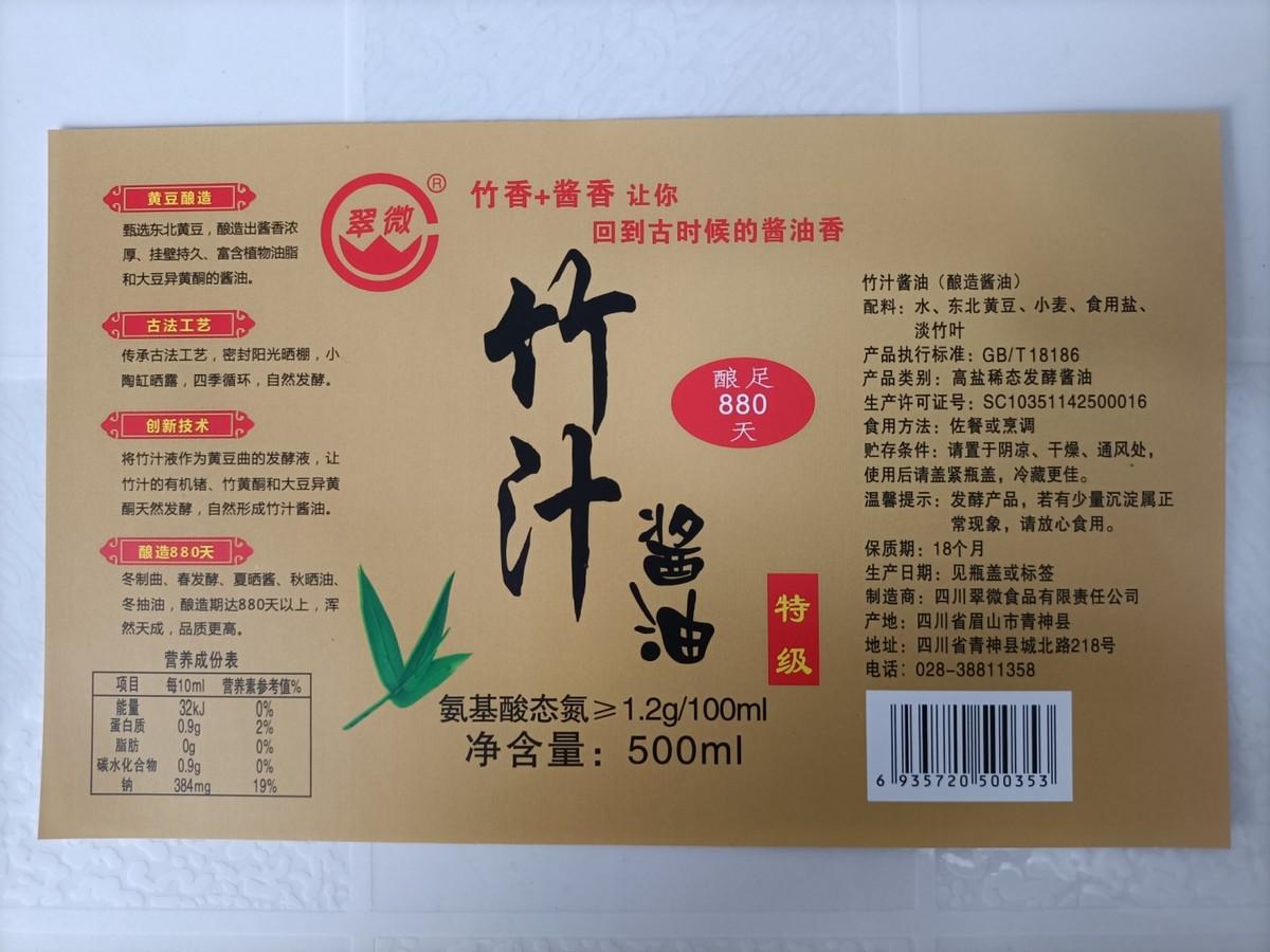 四川翠微食品有限责任公司(前身乐山市青神专利技术有限公司)是运用传统工艺生产翠微牌竹汁酱油、竹汁酱、竹汁醋、竹汁酒等拳头产品的酿造食品企业,公司集科、工、贸一体,具有多年的发酵食品加工生产经验,专注于酱油、酱类、食醋等酿造调味品的研究开发生产。公司曾被《人民日报》公布为“全国知名企业”,被四川省人民政府授予“优秀私人企业”称号,中央电视台、中央人民广播电台、中国科技报、中国食品报、四川日报、中国专利报等诸多主流媒体曾作了专题报道。